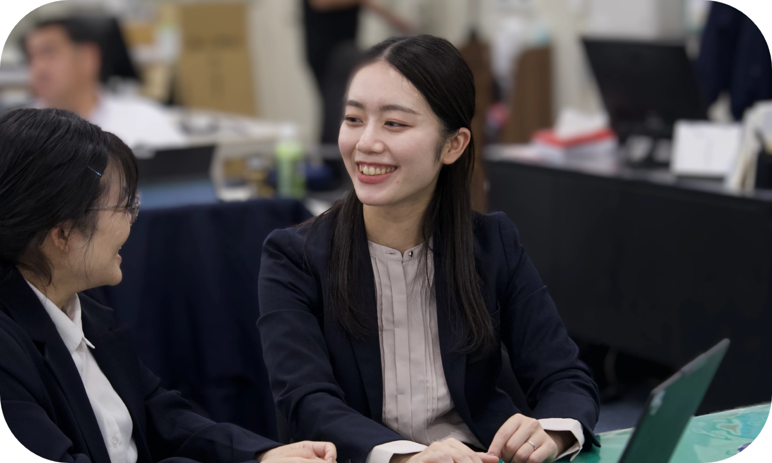 先輩社員によるマンツーマン指導。実務を通してスキルを定着させる。